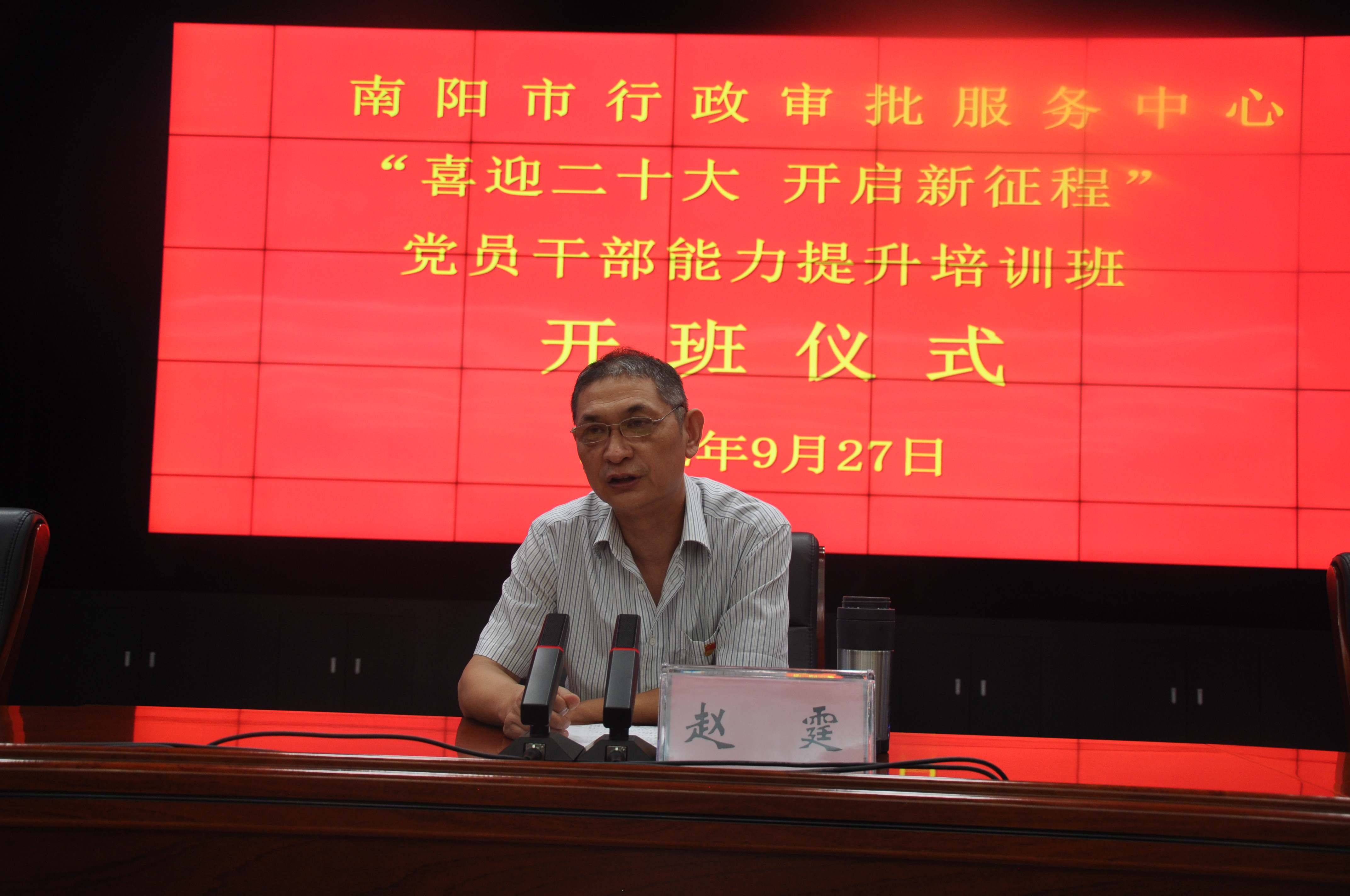 9月27日至29日,市行政审批服务中心“喜迎二十大 开启新征程”党员干部能力提升培训班在我校新野分校成功举办。开班仪式上,副校长邹燕秋致欢迎词,市行政审批服务中心四级调研员赵霆作动员讲话,新野分校常务副校长闫延东主持,41名学员参加。