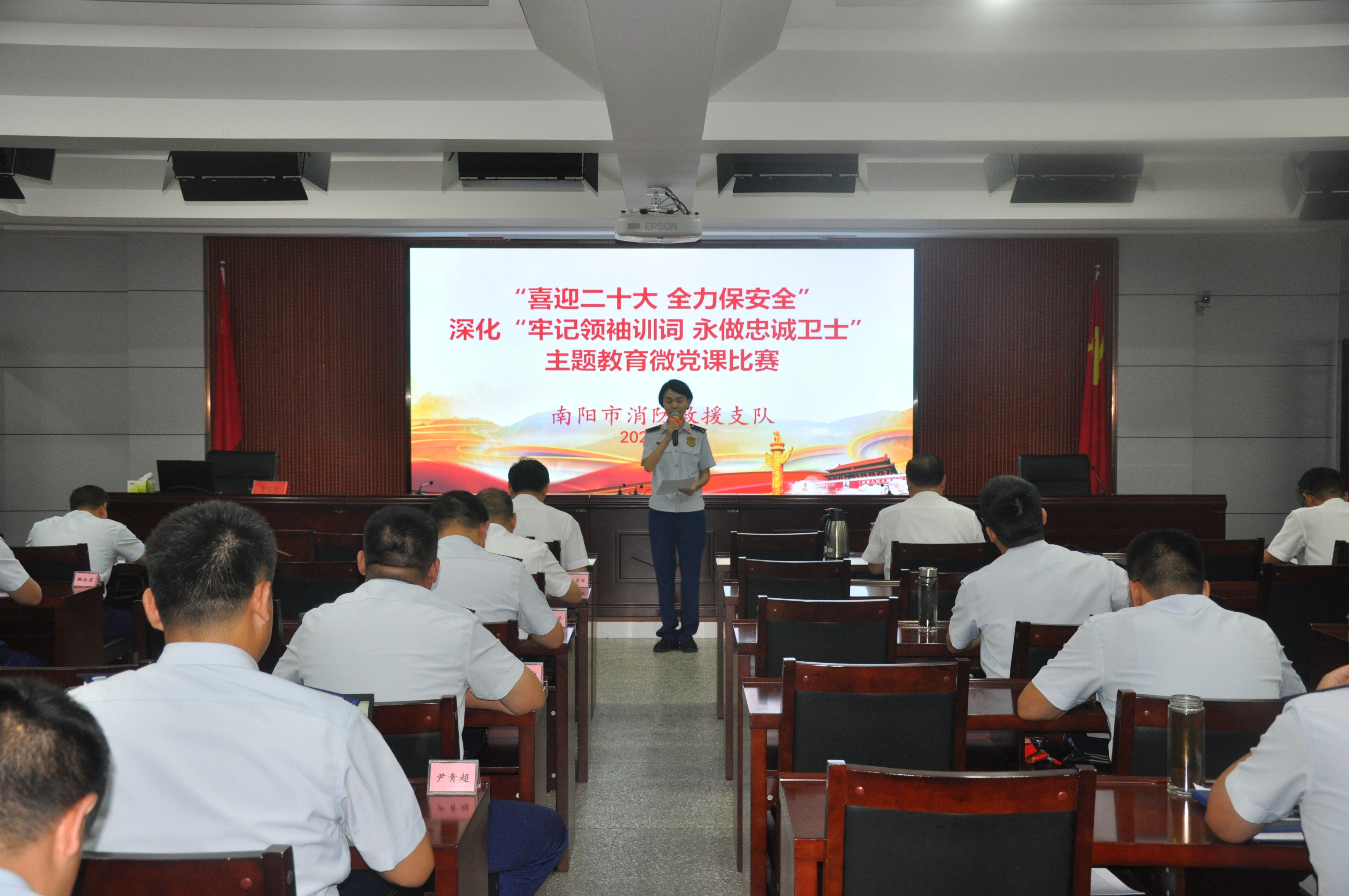 此次培训采取专题授课与现场教学相结合的方式进行,我校精心安排了《推进新时代党的建设新的伟大工程》《奋力建设南阳省域副中心城市》等专题课程;组织学员去内乡县衙进行现场教学,通过一幅幅寓意深刻的楹联,学员们领悟了南阳古代优秀官德文化的博大精深。在培训中,还组织了“喜迎二十大,全力保安全”,深化“牢记领袖训词 永做忠诚卫士”主题教育微党课比赛,各位党员的精彩演说充分体现了基层党组织和全体党员不忘初心、砥砺奋进的决心,展现了新时代“火焰蓝”的风采。