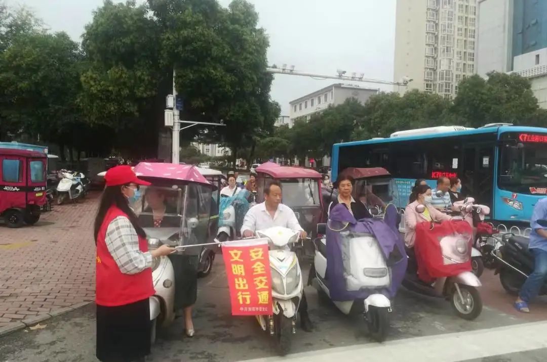 七一路文化路口是中心城区交通拥堵状况较严重的路口之一,是周边多所中小学学生上学、放学必经之路,高峰时段通行压力大,但无论酷暑严寒,不管刮风下雨,甚至面对少数市民的不理解、不配合,党校志愿者始终身着红马甲、头戴小红帽、手持小红旗坚守在交通岗上,协助交警宣传文明交通,规范接送学生车辆停放,疏导车辆行人有序通行,对行人不走人行道、闯红灯、乱穿马路及非机动车遇红灯停车超越停止线、闯红灯、不按规定车道行驶等交通违法行为进行文明劝导和协助纠正。同时,还为过路的老年人、学生、残疾人等需要帮助的人员提供力所能及的服务,耐心热情回答路人问询。